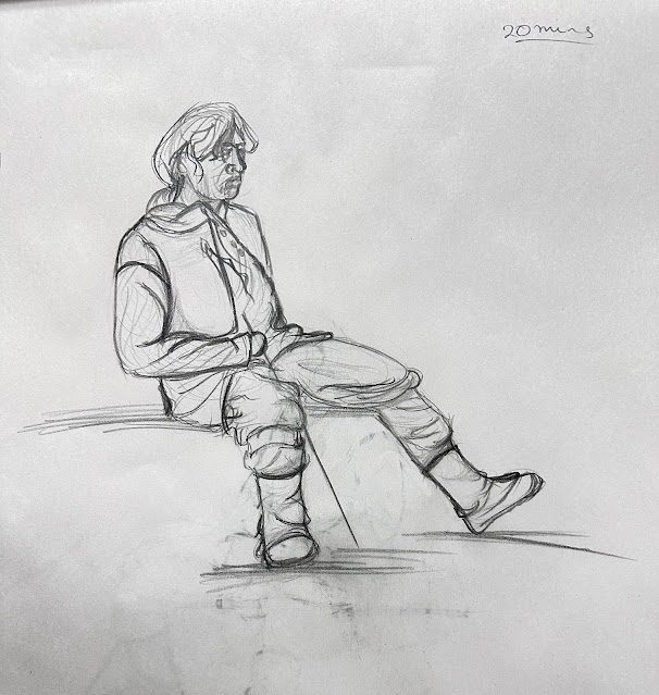 A model wearing a costume taught me how to draw the cloth and more importantly, how to make it flow and drape around a body: